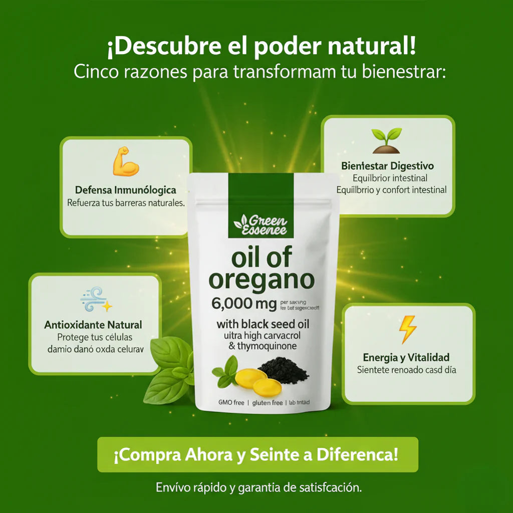El aceite de orégano es conocido por sus propiedades antioxidantes y antimicrobianas. Tradicionalmente, se utiliza para apoyar la salud digestiva e intestinal y para reforzar el sistema inmunológico.