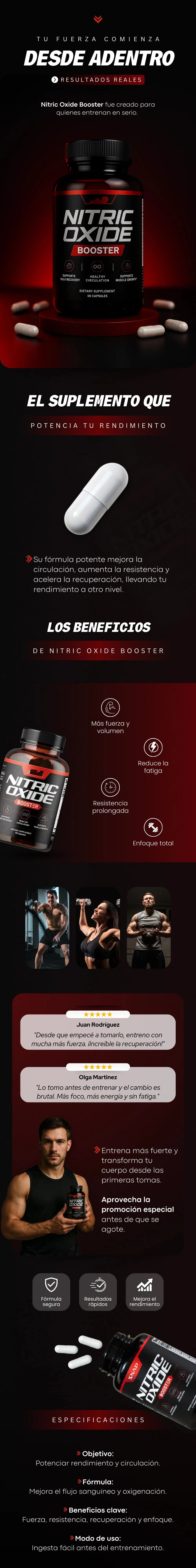 El óxido nítrico ayuda a mejorar la circulación sanguínea, aumentar la resistencia física, potenciar el bombeo muscular, acelerar la recuperación y aportar más energía durante el entrenamiento.